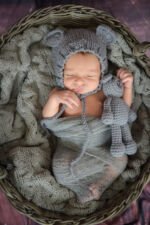 In order to get those distinctive newborn images, these sessions are best if done during the first 10 days of life. These sessions typically last 1-3 hours to allow plenty of time for feeding, changing and to capture those sweet, sleepy pictures. For newborn photo shoots, we will travel to your home so you don’t have to take the little one out. We will come equipped with backdrops, flooring, props and various style baby hats and headbands for use in your images.